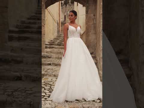 Das Brautkleid Lady Di Bride 1771 bezaubert mit seiner fließenden, leichten und luftigen A-Linien-Silhouette und ist ideal für Bräute, die sich einen romantischen, zarten und zugleich modernen Look wünschen. Gefertigt aus hauchzartem Tüll , bietet es einen natürlichen und anmutigen Fall, der jede Bewegung elegant unterstreicht.