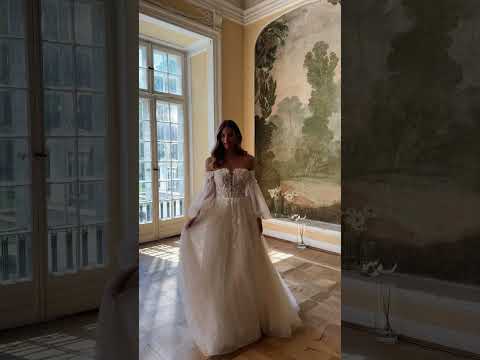 Die abnehmbaren langen Tüllärmel verleihen dem Kleid Volumen und Leichtigkeit und bieten gleichzeitig die Möglichkeit, das Kleid je nach Tageszeit zu verändern.