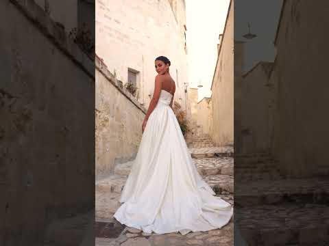 Mit dem abnehmbaren Überrock verwandelt sich das Kleid im Handumdrehen in einen majestätischeren Look mit längerer Schleppe , perfekt für die Zeremonie und Fotos.