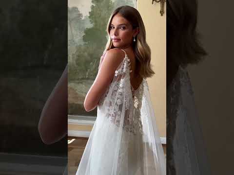 Durch den abnehmbaren Umhang lässt sich das Kleid zwischen Zeremonie und Empfang verwandeln und bietet so zwei Looks in einem.