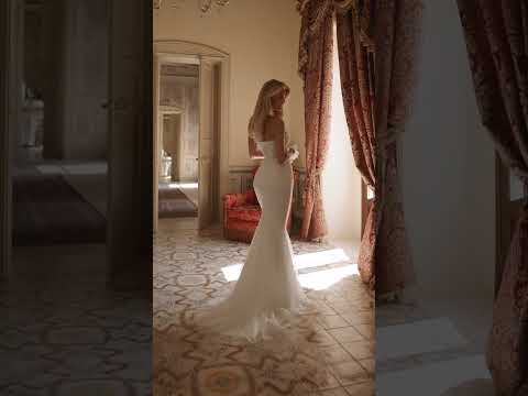 Das Modell Zaphir von Anna Sposa ist ein raffiniertes und vielseitiges Brautkleid, das als wahrhaft wandelbares Ensemble konzipiert wurde. Es kombiniert ein trägerloses Oberteil aus Chantilly-Spitze mit einem figurbetonten Rock aus Jersey-Tüll und kreiert so eine moderne und elegante Silhouette.
