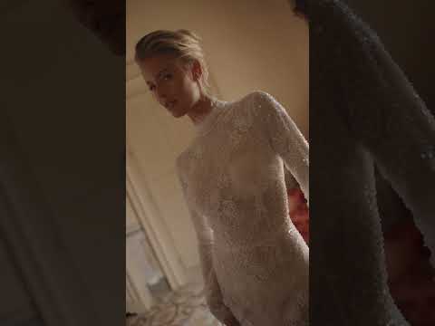 Das Kleid zeichnet sich außerdem durch seine abnehmbaren Accessoires aus: eine XXL-Dekorationsblume , elegante kurze Handschuhe und sogar abnehmbare Shorts , mit denen man den Look je nach Atmosphäre der Zeremonie oder des Empfangs individuell gestalten kann.