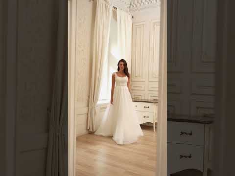La taille marquée souligne la silhouette avant de s’ouvrir sur une jupe A-line fluide en tulle vaporeux. Légère et aérienne, elle accompagne chaque pas avec grâce et fluidité.