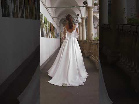 Un modèle idéal pour les mariées qui recherchent une robe sobre, chic et raffinée, alliant le confort d’une coupe fluide à la finesse des détails haute couture.