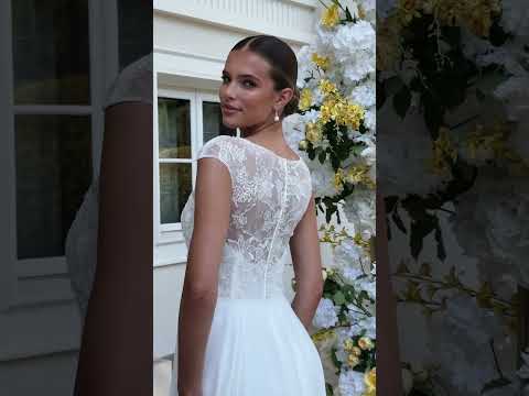 Sa coupe en ligne A met en valeur la silhouette tout en offrant confort et légèreté à la mariée.