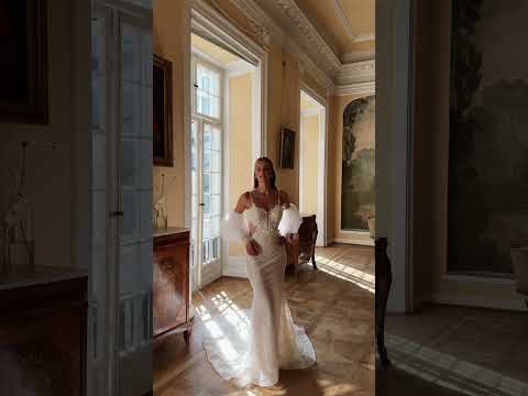 Robe de mariée Anna Sposa Vuasen – Sirène ivoire en dentelle florale avec manches amovibles et dos nu