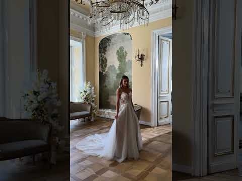 Robe de mariée Anna Sposa Winora – Ligne A nude en dentelle florale avec bretelles fines et jupe aérienne