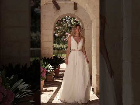 La robe Cressida est une création sublime alliant pureté, modernité et féminité assumée. Avec son décolleté profond et sa dentelle florale appliquée à la main, elle offre un équilibre parfait entre douceur et sensualité.