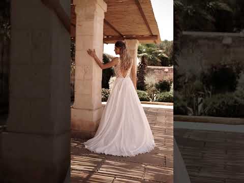 La robe de mariée Filla est une merveille de douceur et de sensualité moderne. Son corsage en dentelle florale 3D, richement texturé, crée un jeu de transparence délicat tout en sculptant la silhouette avec beaucoup de naturel. Le décolleté en V, équilibré et féminin, met en valeur le buste sans jamais en faire trop, et les pétales en relief semblent se poser sur la peau avec une finesse rare.