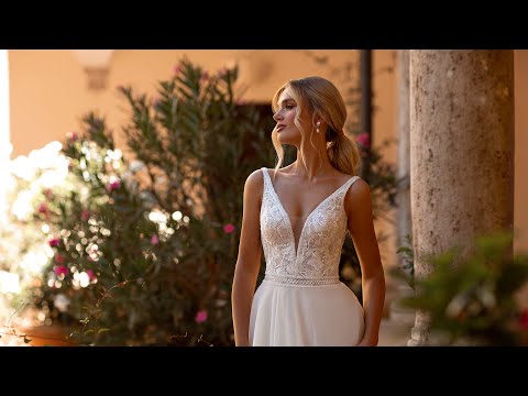 La robe de mariée Adhara, issue de la collection Innamorata par Anna Sposa, incarne la légèreté romantique et la grâce naturelle d’une mariée moderne.