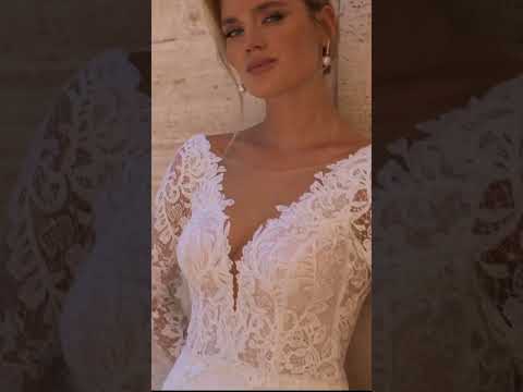 Robe de mariée La Petra Lempy – Sirène ivoire en dentelle élégante avec manches longues et traîne spectaculaire