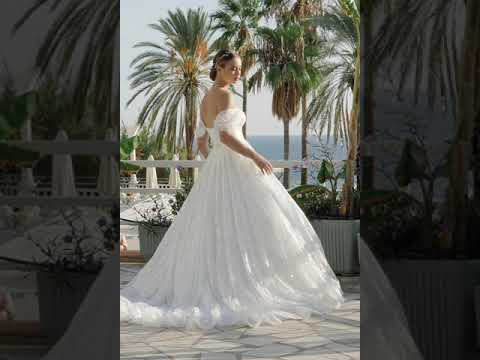 La robe de mariée Lady Di Bride 727 séduit par son style spectaculaire et raffiné. Son bustier col bateau plongeant souligne le décolleté avec féminité, tandis que ses manches tombantes délicates dévoilent subtilement les épaules pour un effet sensuel et romantique.