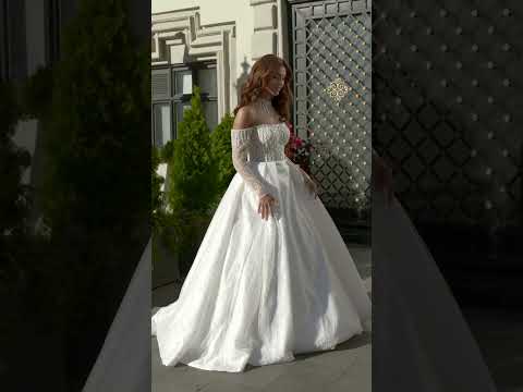 Sa jupe volumineuse façon princesse, ornée de détails scintillants, apporte éclat et luminosité à chaque pas. Les reflets subtils de son tissu haut de gamme captent la lumière et créent un effet féerique tout au long de la cérémonie.