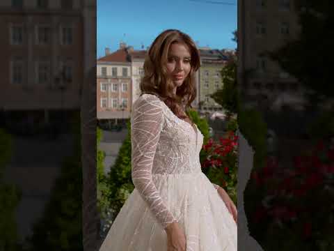 Robe de mariée Lady Di Bride 912 – Coupe princesse scintillante, manches longues et décolleté glamour