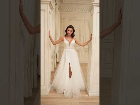 Robe de mariée Lady Di Bride 1239 – A-line avec fente élégante bustier avec fines bretelles et dentelle