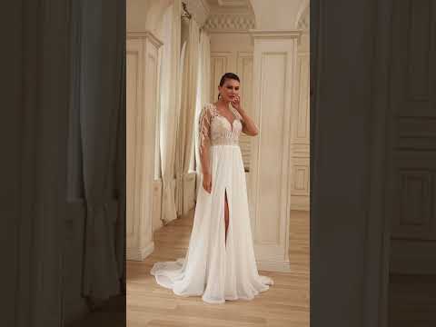 Robe de mariée Lady Di Bride 1232 – A-line mousseline dentelle et manches longues avec fente