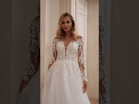 Robe de mariée Lady Di Bride 1209 – A-line en tulle scintillant avec manches longues en dentelle