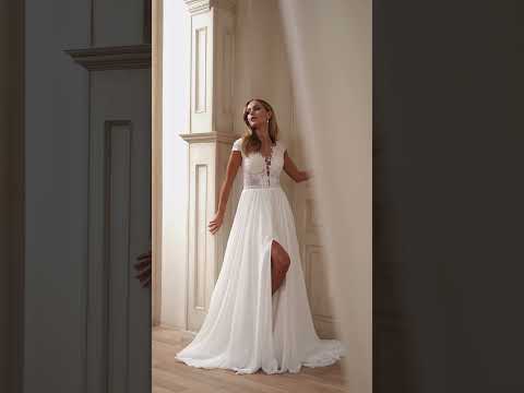 Robe de mariée Lady Di Bride 1205 – A-line en mousseline avec dentelle brillante et fente élégante