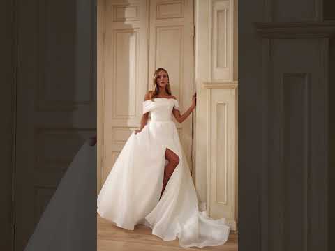 Robe de mariée Lady Di Bride 1208 – A-line en organza avec fente et épaules dénudées col bateau
