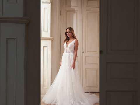 Robe de mariée Lady Di Bride 1202 – A-line en tulle brodé avec décolleté en V plongeant