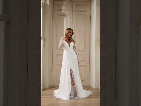 Robe de mariée Lady Di Bride 1203 – A-line en tulle avec manches longues dentelle et fente élégante