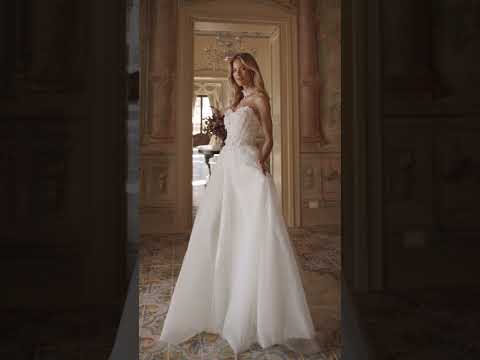 La Karavella est parfaite pour les mariées qui souhaitent un look féminin, lumineux et raffiné, avec la touche intemporelle du bustier et la modernité d’un tombé léger.