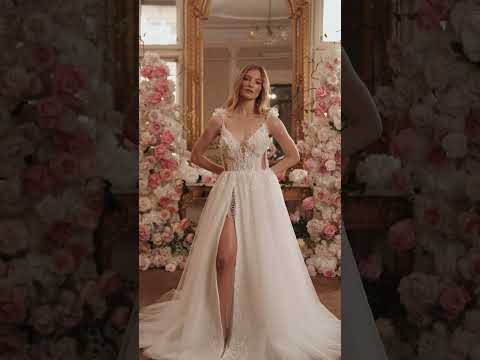 Robe de mariée Lady Di Bride 1610 – dentelle floral fines bretelles fente avec ornements
