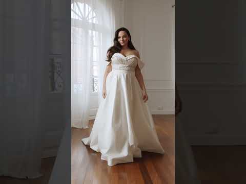 Cette création associe avec brio le raffinement du mikado, la légèreté du tulle, et la modernité d’une ligne épurée pour un rendu spectaculaire, digne d’un mariage élégant et inoubliable.