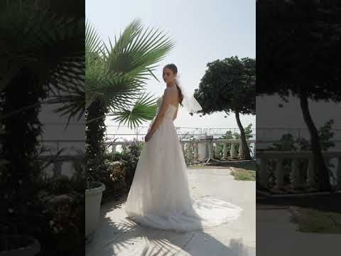 La jupe droite en tulle léger, agrémentée de motifs floraux en dentelle, crée un effet moderne. Parfaite pour les mariées qui souhaitent allier élégance et confort, cette robe illumine la silhouette et attire tous les regards.