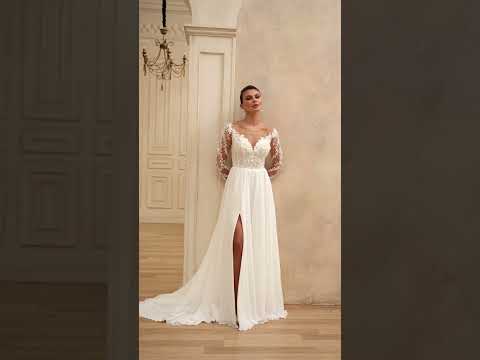 Robe de mariée Lady Di Bride 1235 – Mousseline fluide, manches longues et fente élégante