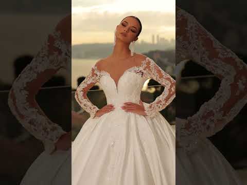 Robe de mariée Lady Di Bride 1510 – Princesse satinée & manches longue dentelle col bateau
