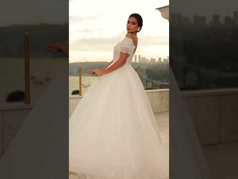 La jupe ample en tulle scintillant révèle de magnifiques motifs brodés, dessinant un jeu de lumière féerique à chaque mouvement. Enfin, la traîne royale parachève cette création d’exception, pour un rendu spectaculaire et inoubliable, digne d’une princesse moderne.