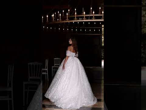 Entièrement ornée de perles et motifs scintillants, la robe capte la lumière à chaque mouvement pour un effet spectaculaire. La jupe majestueuse en couches vaporeuses descend jusqu’au sol avec prestance, idéale pour un mariage grandiose et inoubliable.