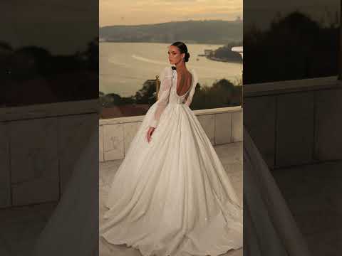 Robe de mariée Lady Di Bride 1502 – Princesse en tulle scintillant brodé et manches longues épaulés