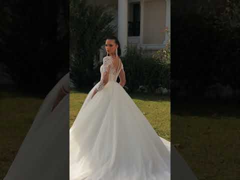 Robe de mariée Lady Di Bride 1525 – Princesse en tulle scintillant, manches longues, perles