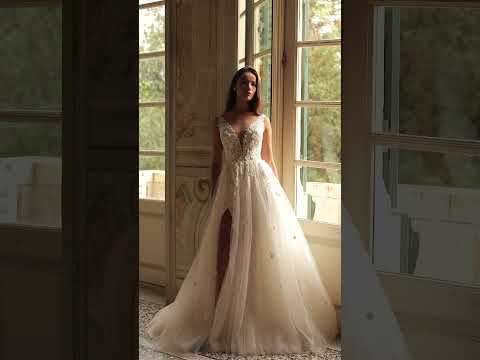 Robe de mariée Lady Di Bride 1423 – A-line fendue en tulle, dentelle et fleurs à relief