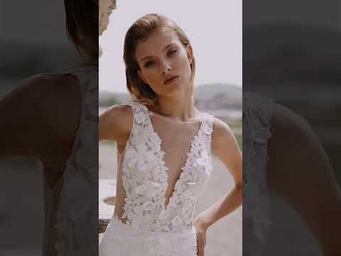 Cette somptueuse robe de mariée coupe fourreau incarne la féminité dans toute sa splendeur. Son corsage au décolleté plongeant à l’avant comme à l’arrière sublime les courbes avec sensualité et raffinement, tandis que ses larges bretelles assurent un maintien parfait et une allure harmonieuse.