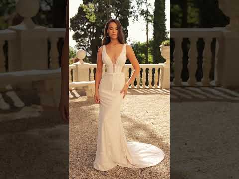 Robe de mariée fourreau Lady Di Bride 1404 – Coupe sirène scintillante et décolleté plongeant