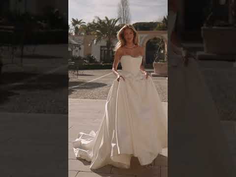 Sa coupe volumineuse, digne d’un véritable conte de fées, met en valeur la taille grâce à un corsage raffiné qui attire le regard sur le décolleté. Le tissu haut de gamme assure une tenue parfaite tout au long de la cérémonie, créant un effet majestueux et inoubliable.